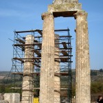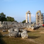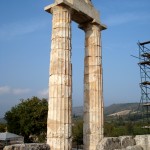 The Nemean Games were held from at least 573 BC at the sanctuary of Zeus at Nemea. Three columns of the temple of the 4th century BC have stood since their construction, and two more were reconstructed in 2002. Currently four more are being re-erected. The site around the temple has been excavated, including the great altar, bath, and hotel.