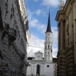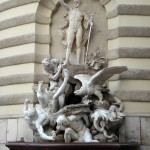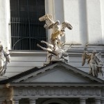 St. Michael’s Square (Michaelerplatz) faces the elaborate entrance into the Hofburg from Kohlmarkt. It was an important crossroads as early as Roman times and recent excavations have uncovered the remains of Roman and medieval foundations and drainage systems, along with the remnants of the old 17th century Burgtheater.