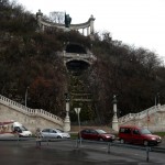 If you walk down the hill from the Citadel towards Erzsebet Hid (Elizabeth Bridge) you will come across this statue of St. Gellert, an eleventh-century martyr. It is located in a pleasant spot with an artificial waterfall. The monument stands some ten meters high and was built in 1904.