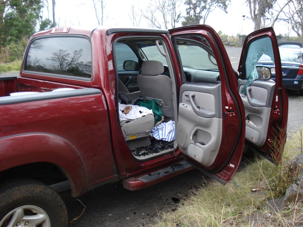 Justin, my brother Jason, his girlfriend Scarlett, their two kids Isis & Nahiku, and I went on a short hike at Kipuka Puaulu, a bird park just outside the Hawaii Volcanoes National Park. When we returned to our cars, we discovered that Scarlett’s truck had been broken into (grrr!). Fortunately, though, the thieves only took […]