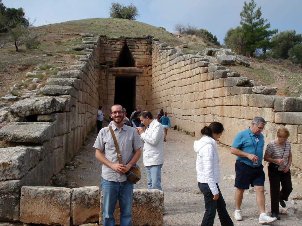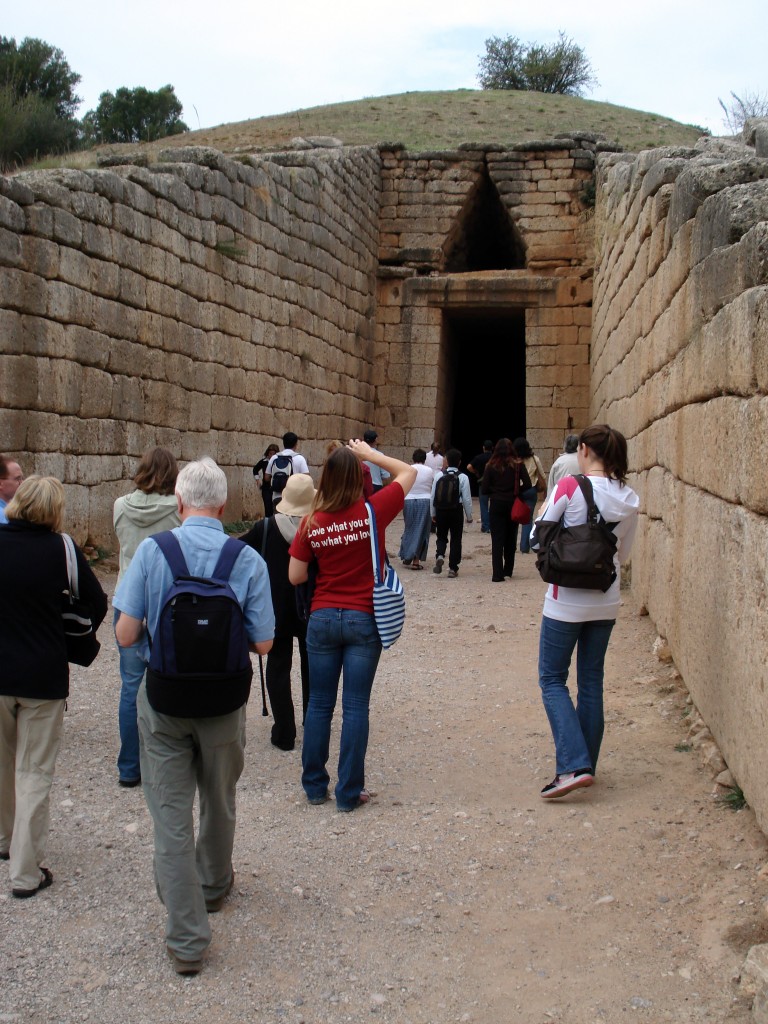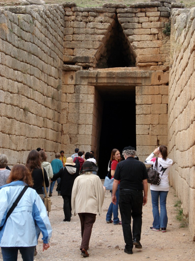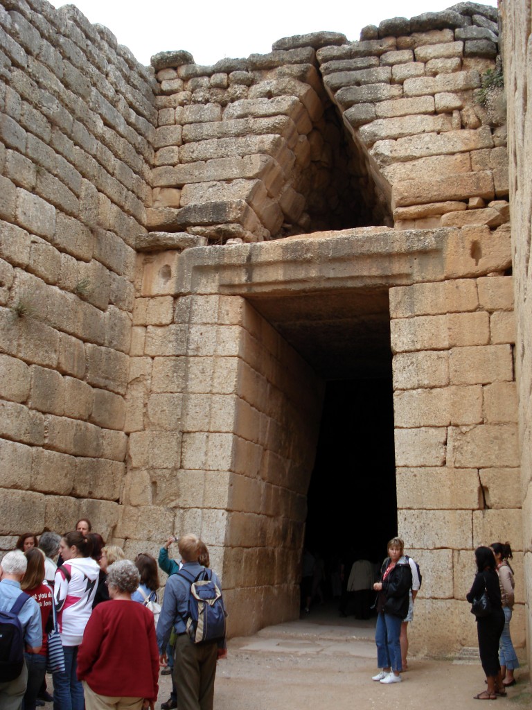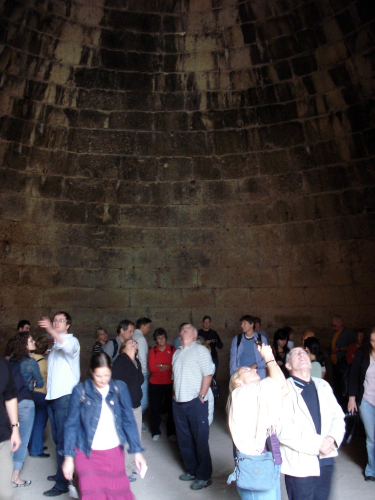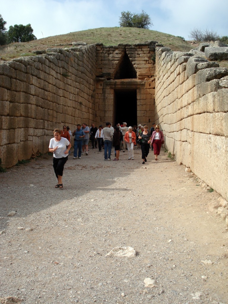 The so-called “Tomb of Clytemnestra” is outside the Citadel at Mycenae, and is a good example of the architectural type known as the tholos.